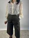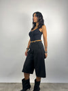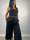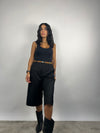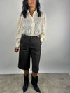 Bermuda a vita media in tessuto fluido con pinces frontale e tasche laterali.