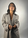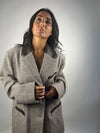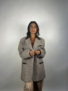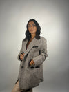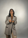 Blazer dal taglio over con N tessuto spigato sui toni del marrone, con collo e profili delle tasche in contrasto effetto pelle.