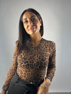 Body a manica lunga in tessuto leggero e morbido, caratterizzato da un’elegante stampa maculata nei toni caldi del marrone.