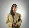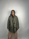 La linea dritta e leggermente over valorizza la figura senza rinunciare alla comodità, mentre i revers ampi, le tasche laterali e la chiusura frontale con bottoni donano un tocco classico e intramontabile.