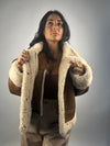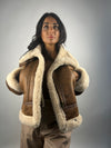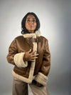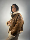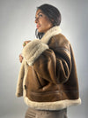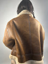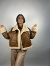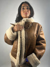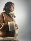 Questo montone effetto shearling è realizzato in morbida eco-pelle con interno in eco-pelliccia a contrasto, visibile sul colletto, polsini e bordo inferiore.