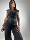 Jeans palazzo denim da un colore un po’ invecchiato dei toni marroni
