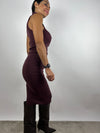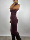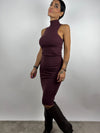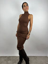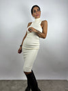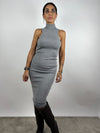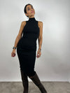 Abito midi in maglia a costine, con collo alto e senza maniche.