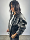 Un capo d’impatto che fonde carattere e stile contemporaneo. Questo bomber firmato Lumina è realizzato in eco-pelle effetto lucido nei toni del grigio, una nuance versatile e raffinata che cattura la luce e dona personalità a qualsiasi outfit.