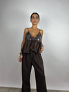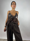 Realizzato in tessuto scivolato che cade con eleganza, questo pantalone a vita alta è arricchito da pinces frontali che slanciano la figura e ne esaltano la linea fluida.