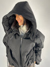 Il collo alto strutturato e le zip metalliche a vista donano un tocco deciso, mentre la vestibilità morbida con coulisse regolabili permette di adattarlo al proprio stile, da sportivo a chic.